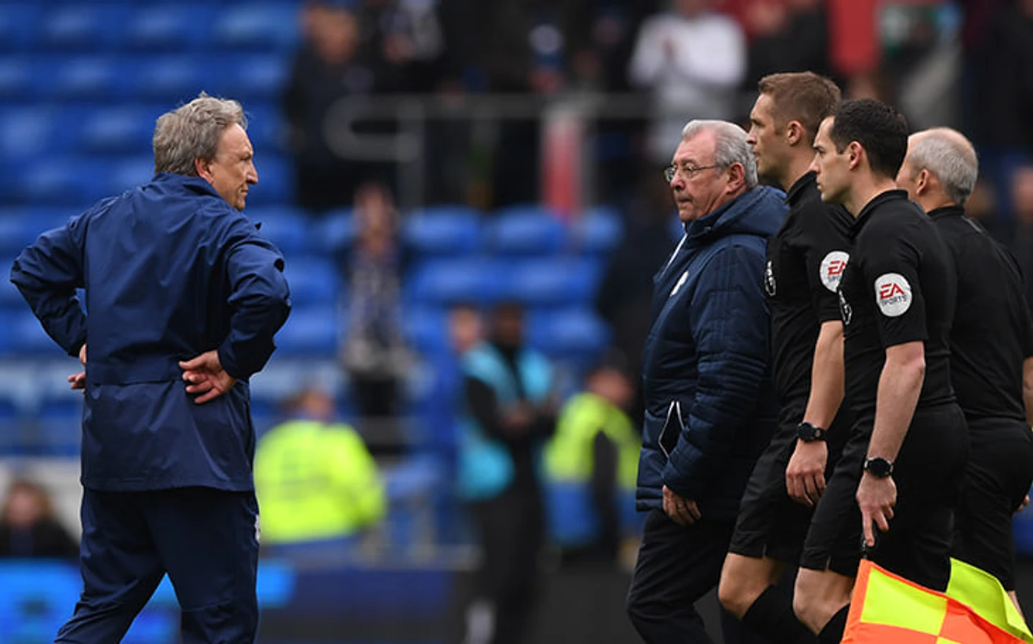 Сразу после финального свистка тренер «Кардиффа» Нил Уорнок вышел на поле и некоторое время просто смотрел на арбитров с шокированным видом.