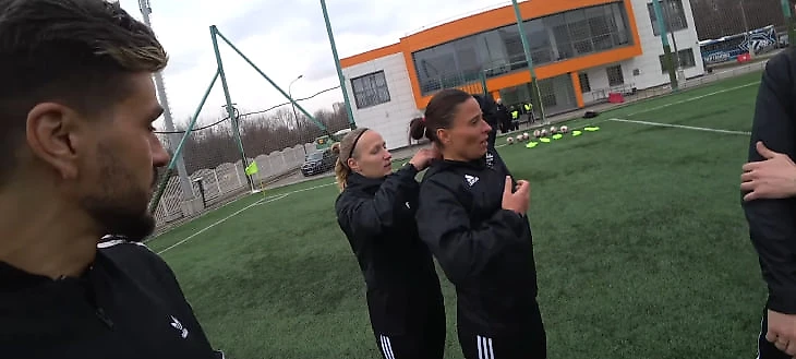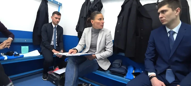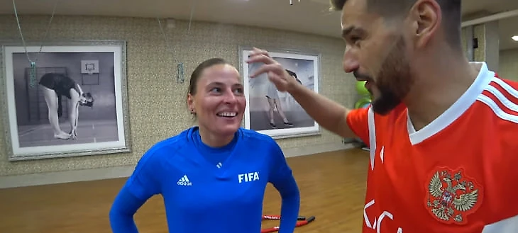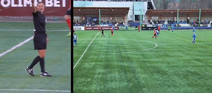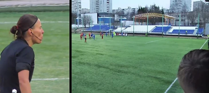 В перерыве матча Савин обсудил с Пустовойтовой назначение пенальти: «Бетонная [точка]. Слышала, как ты мне дважды подсказал, если что – это твое решение. Вот представь, в Европе нам надо на английском все это говорить, когда работаем»