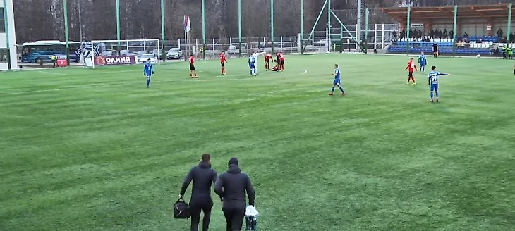 В начале второго тайма одному из игроков сбили дыхание: «Можно врачей, дыхание сбили, все нормально. Дыши, дыши, ничего, тихо, тихо».