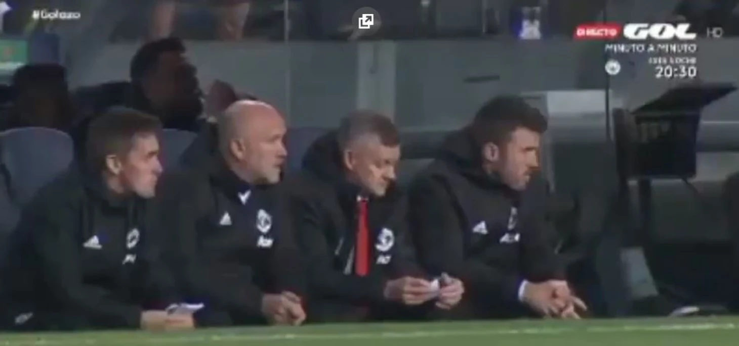 Во втором тайме Оле-Гуннар Сульшер хотел встряхнуть игру, сменив тактику с 4-2-2 (ромб) на стандартную 4-4-2. По телевизору показали, как он обсуждал тактику с тренерским штабом. Каррик весь в игре.