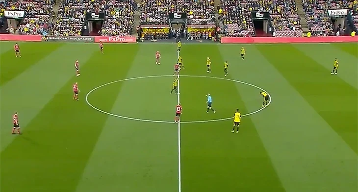 «Саутгемптон» мощно начал матч с «Уотфордом». Бешеный прессинг Шейна Лонга вывел его один на один уже на 4-й секунде. Он заблокировал удар по мячу защитником, подобрал мяч и побежал к воротам.