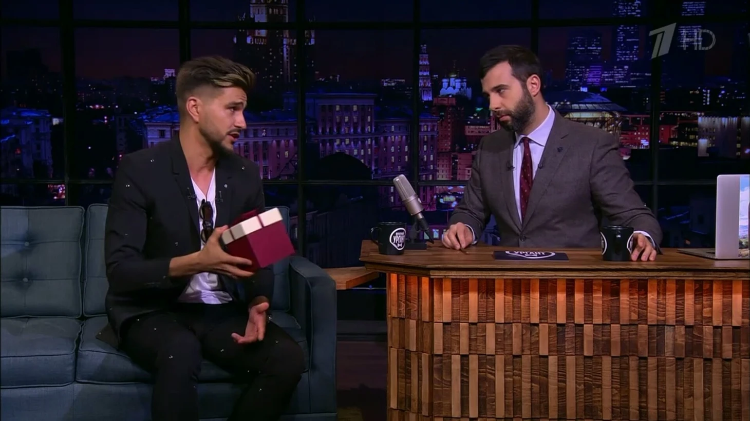 Савин пришел в «Вечерний Ургант». Рассказал про Дудя, «Красаву», магию тапок и подарил ракушку