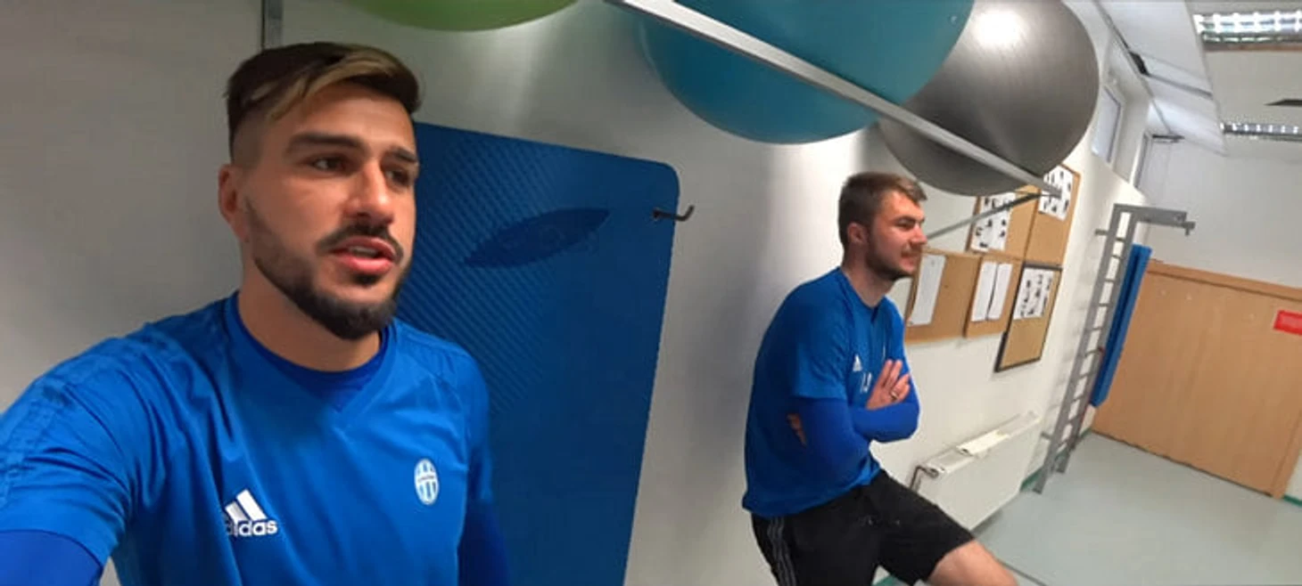 Тренажерный зал скромный, поэтому Савин спрашивает, часто ли Комли вспоминает крутую академию «Краснодара».