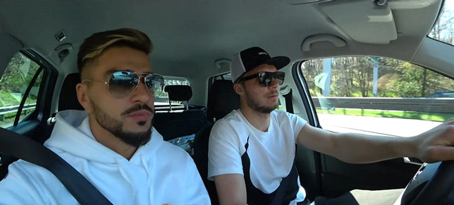 На второй день Комличенко нацепил яркий прикид «по погоде» и с Савиным поехал на Chevrolet Camaro на тренировку. В плейлисте – Михаил Круг.