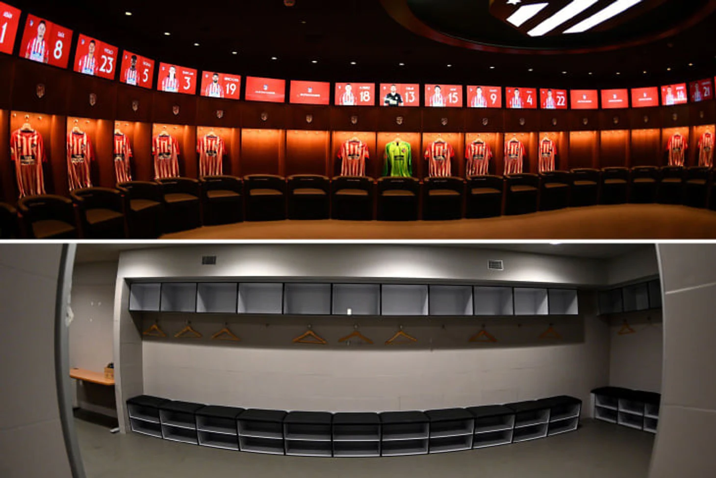 Гостевые раздевалки всегда скромнее, и это нормально, но на фоне просторов (и стиля) раздевалки «Атлетико» разница особенно бросается в глаза. Очевидно, что Клоппу будет проще собрать вокруг себя команду и произнести мотивационную речь.