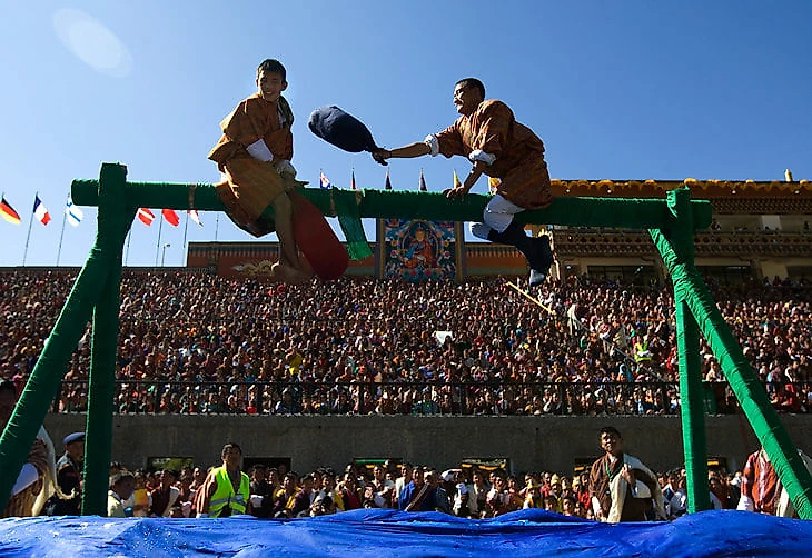 Церемония коронации короля Бутана. Бой подушками, 2008-й год