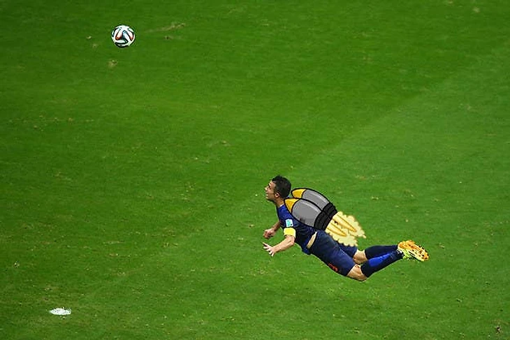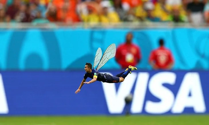 Дэйли Блинд видит, что Робин ван Перси открывается на линии офсайда, и делает сумасшедшую диагональ через полполя. Ван Перси догоняет летящий мяч, каким-то образом замечает, что Икер Касильяс немного вышел из ворот, и совершает магический полет. Касильяс просто смотрит, как мяч перелетает его.