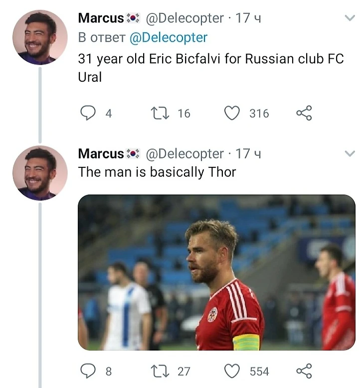В Англии сходят с ума от гола полузащитника «Урала» Эрика Бикфалви. У него уже 4,1 миллиона просмотров в твиттере