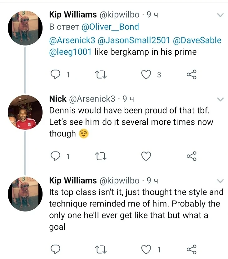 «Это просто топ-уровень. Тоже подумал, что стиль и техника напомнили мне Бергкампа. Возможно он больше так никогда не забьет, но что это за гол!»