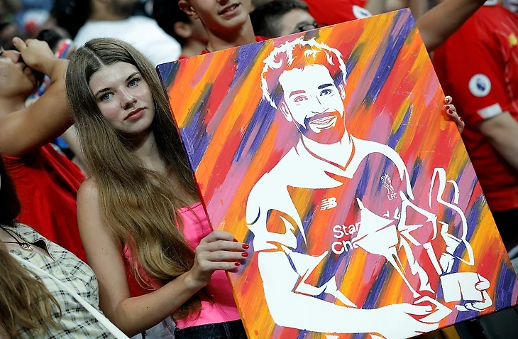 Сегодня в Стамбуле проходит матч за Суперкубок УЕФА. Играют «Ливерпуль» и «Челси». На фотографии попала девушка с портретом Мо Салаха.