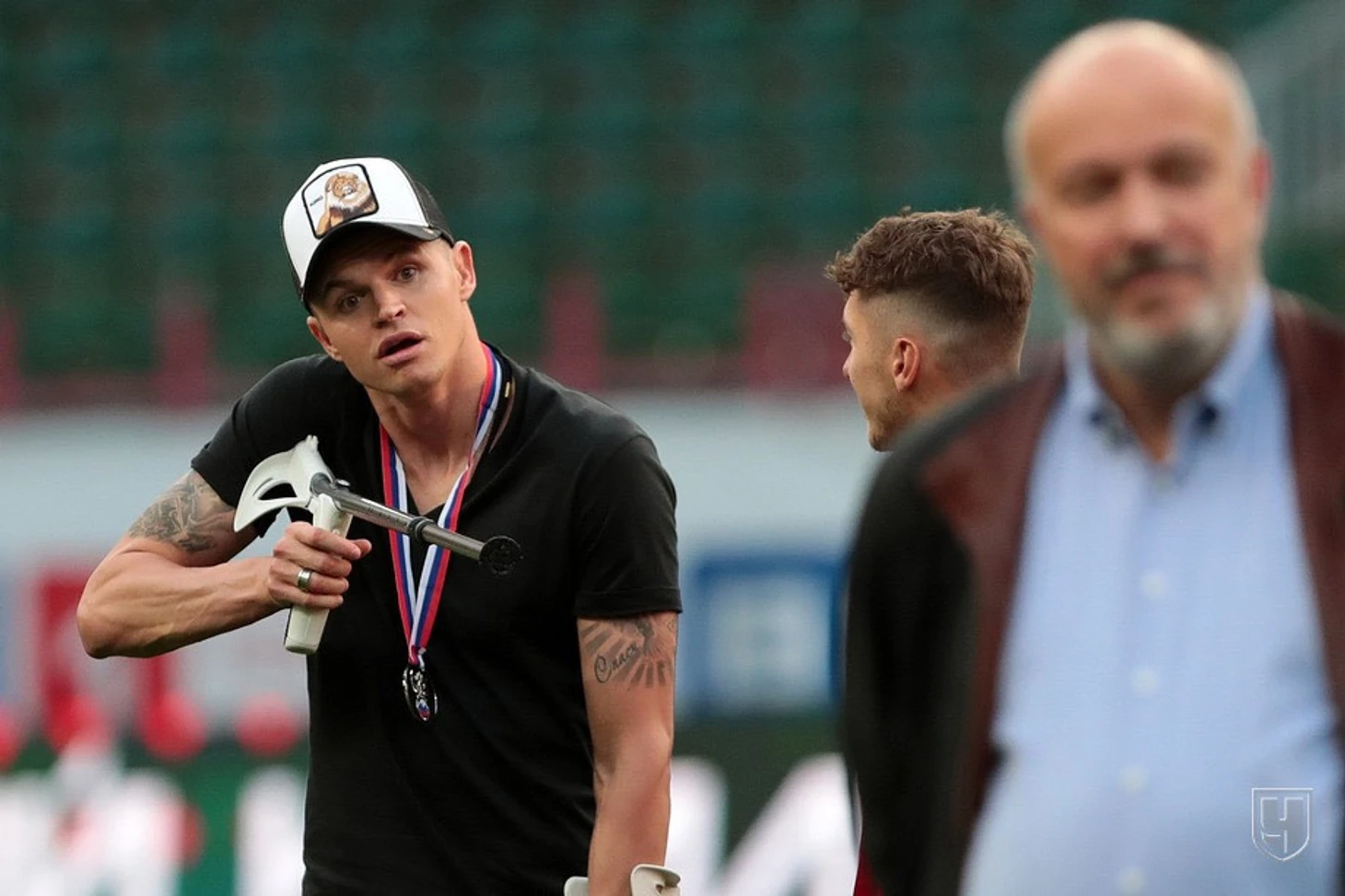 Дима рассказывает, что скандальное фото с Кикнадзе вышло случайно. «Мы с Антохой Миранчуком увидели кого-то на трибунах и типа стреляем, а сфоткали так, как будто я в него целился».