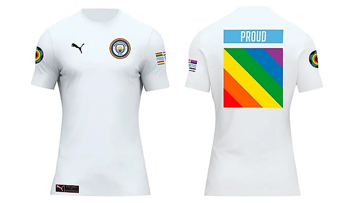 Футболка выполнена в белом цвете с радужной окантовкой вокруг эмблемы «Сити». Сзади на джерси размещен флаг ЛГБТ и надпись «Proud» («Горжусь»), выделенная небесно-голубым цветом.