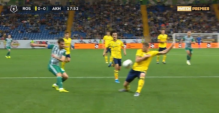 Рука Чернова была согнута в локте и прижата к телу, но судья посчитал, что это все равно фол. «Ахмат» забил.