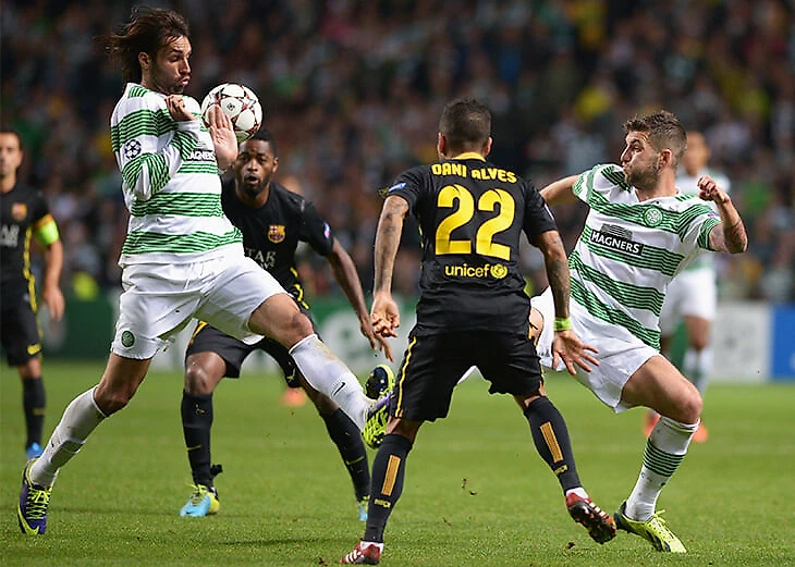 На рукавах тоже останется разделение по цветам, хотя последние годы «Барселона» использовала там только синий. В сезоне-2013/14 был еще и гранатовый, но с плавным переходом, через оттенки.