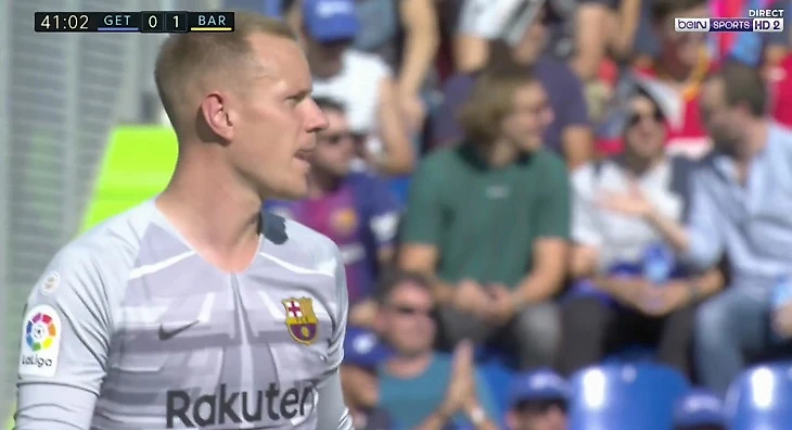 Разбираем по кадрам. Тер Стеген выскочил из-за пределов штрафной и перехватил передачу на соперника.