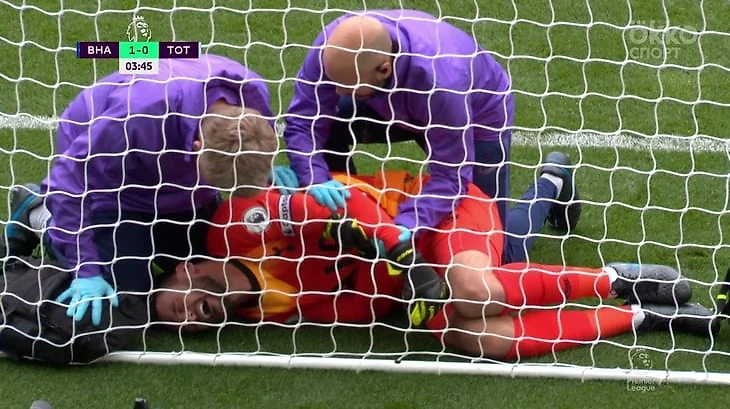 Льориса около пяти минут приводили в чувство – матч был остановлен.