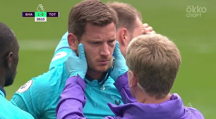 Кстати, на этом проблемы «Тоттенхэма» не закончились. Через 15 минут у Вертонгена заплыл глаз – получил локтем от соперника в центральном круге.