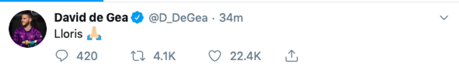 Коллега Давид Де Хеа поддержал вратаря «Тоттенхэма» в твиттере.