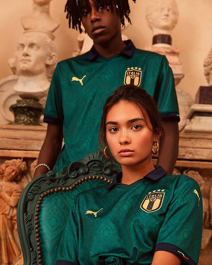 Зеленый цвет отсылает к Ренессансу и посвящен молодым талантам итальянского футбола. На сайте итальянской федерации футбола отмечается, что Puma, технический спонсор сборной, при создании дизайна формы вдохновлялся тканями и архитектурой эпохи Возрождения.