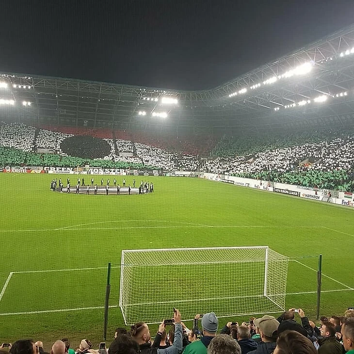 Из-за этого многие фанаты ЦСКА пропустили большой перфоманс хозяев: они выложили огромную мозаику с венгерским флагом с вырезанным центром.