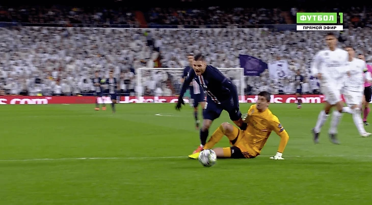 Конец первого тайма матча «Реал» – «ПСЖ». Мауро Икарди выходит один на один, но попадает под вратаря. Явный фол, явно в штрафной.