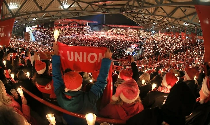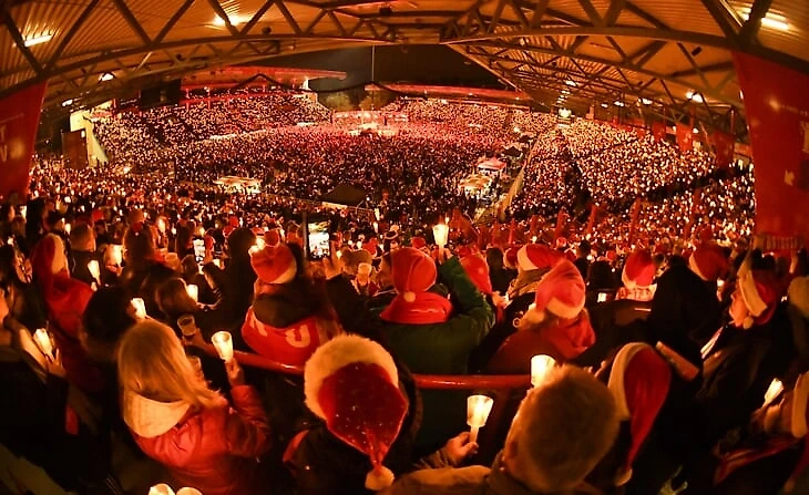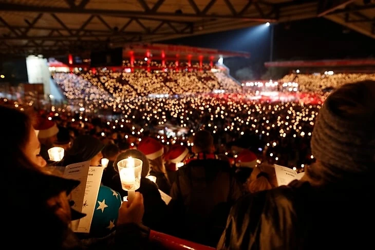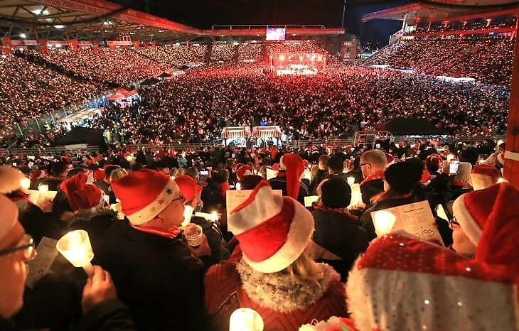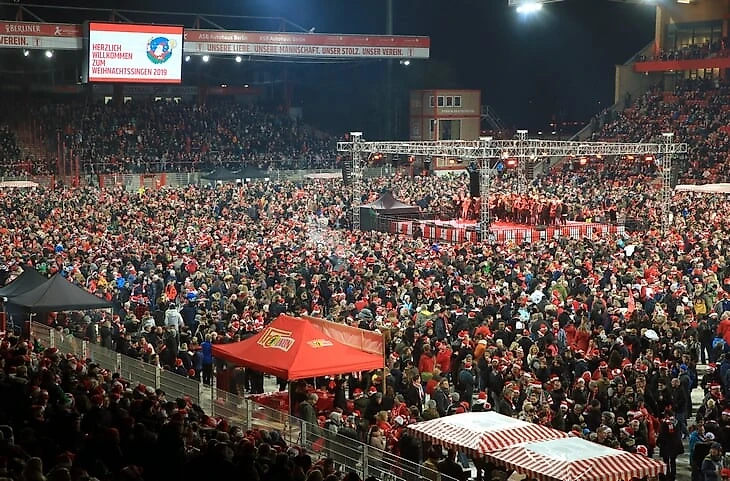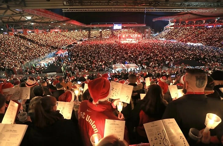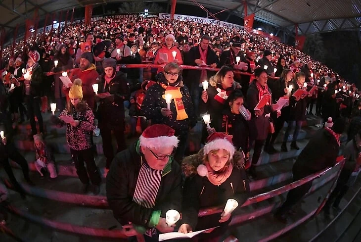 Самая камерная и красивая предрождественская вечеринка Европы уже много лет связана с футболом: она проходит на стадионе берлинского «Униона» и собирает около 30 тысяч участников.