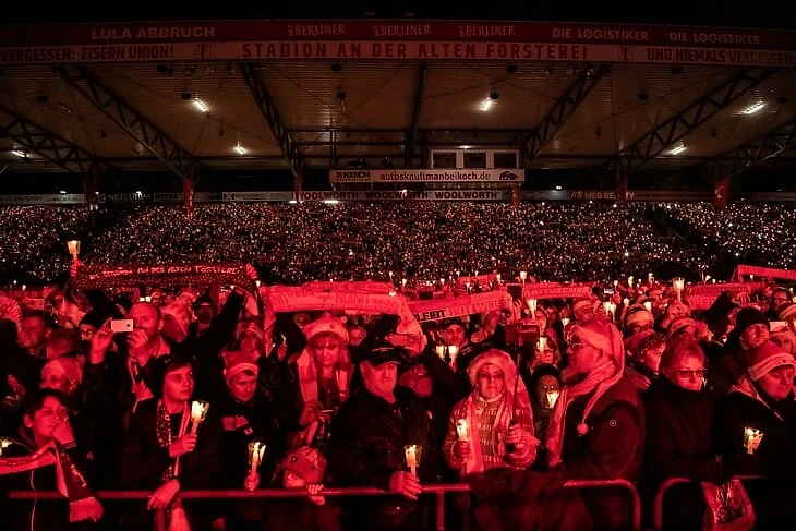 28 тысяч болельщиков поют песни при свечах. Теплая традиция берлинского «Униона»