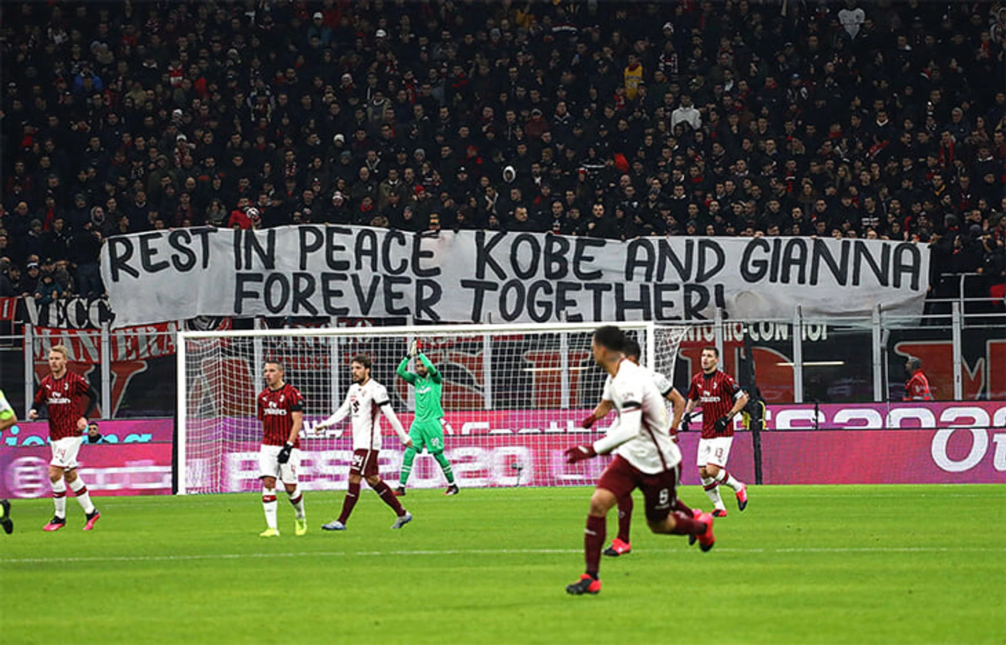 «Милан» (любимый клуб Кобе) проводил легенду: минута молчания, фотографии с дочкой, баннер фанатов «Покойтесь с миром»