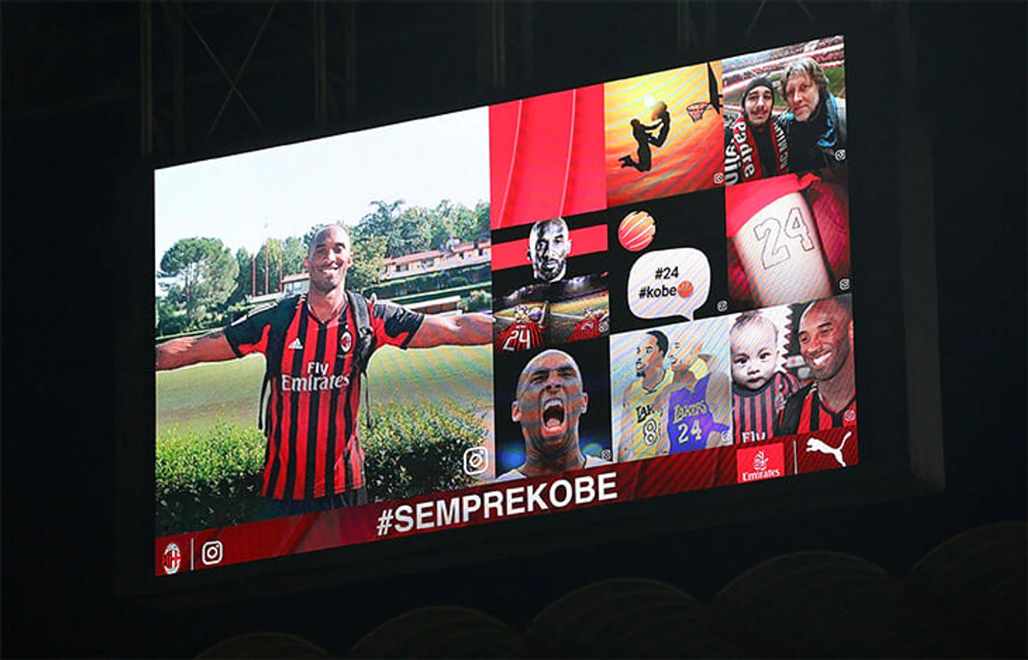 Спортивный мир продолжает скорбеть по великому Брайанту: Супербоул начался с минуты молчания, граффити в честь Кобе и Джанны появляются по всему миру. Новая акция памяти – от «Милана».