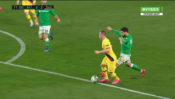 Дальше началась веселая перестрелка: на девятой минуте Де Йонг сравнял счет, на 26-й Фекир забил второй – на него «Барса» ответила голом Бускетса. Все это случилось до перерыва.