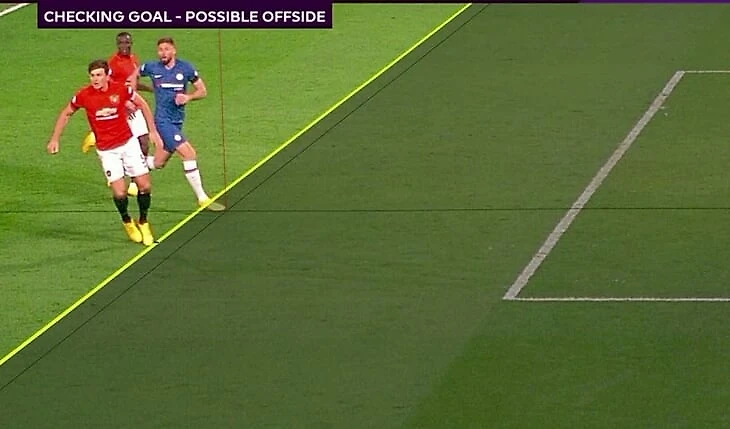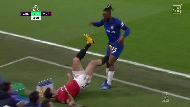 Кристенсен отпасовал на ход Батшуайи, бельгийца опередил Харри Магуайр, капитан «Юнайтед» выбил в аут. Правда, англичанин не удержался и завалился в техническую зону «Челси».