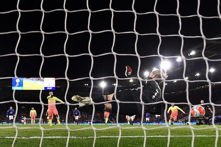 Правда, Серхио Агуэро его не забил – Каспер Шмейхель взял удар, причем режиссер трансляции сделал акцент на том, что датчанин сработал по правилам, одна нога осталась на линии.