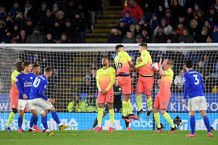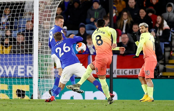 Начнем с ВАР: в первом тайме «Лестер» дважды претендовал на пенальти. Сначала Де Брюйне сыграл рукой в стенке после удара Джеймса Мэддисона, не пустив мяч к воротам. Реф даже не стал смотреть видеоповтор.