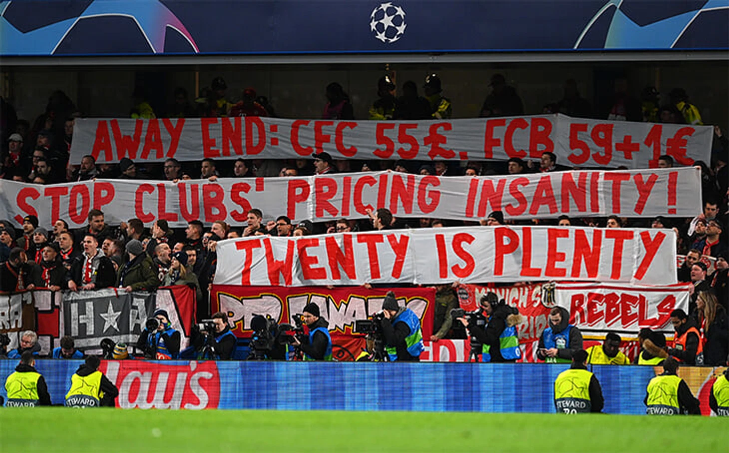 А на трибуне вывесили привычные баннеры против цен на билеты. За билет на «Стэмфорд Бридж» фанаты гостей заплатили 55 фунтов (около 65 евро), на «Альянц-Арена» придется отдать на 5 евро меньше. Немцы считают, что 20 евро – оптимальная цена. Кстати, обратите внимание на цифру 59+1 – даже на таких плакатах болельщики не могут писать цифру 60, ведь это отсылка к «Мюнхен-1860», главному врагу «Баварии».