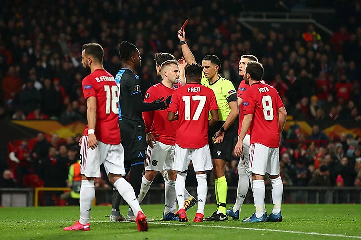 В итоге все решения Гезебююка остались в силе: Дели ушел в раздевалку, а Бруну Фернандеш забил первый гол в матче. После этого «Манчестер Юнайтед» уверенно отправил еще четыре мяча в ворота Симона Миньоле: отличились Игало (первый гол за «МЮ»), Мактоминай и дважды Фред.