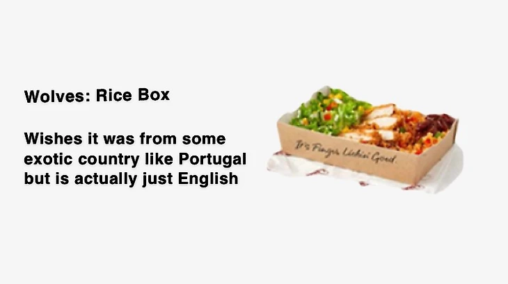«Вулверхэмптон» – рис бокс. Хотелось бы, чтобы это было что-то экзотическое (например, португальское), но оно английское.
