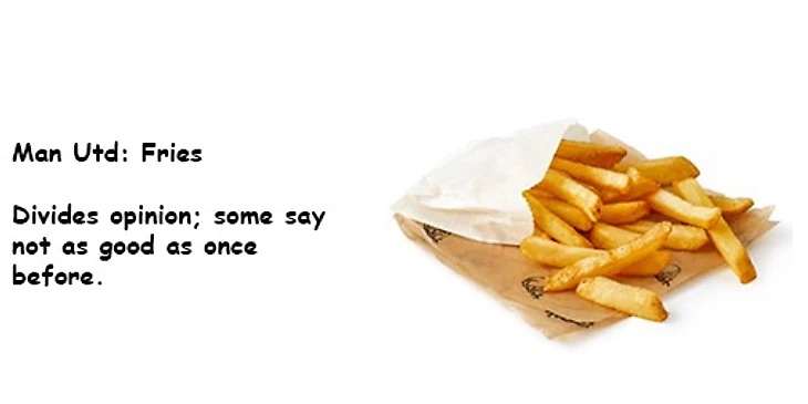 «Манчестер Юнайтед» – картошка фри. Вызывает смешанные чувства: некоторые говорят, что уже не так хороша, как раньше.