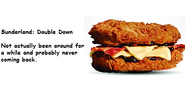 Сандерленд "double down" - не удалось перевести шутку нормально. "Double down" потому что Сандерленд вылетел уже из двух дивизионов. То есть "дважды на дне (таблицы)".