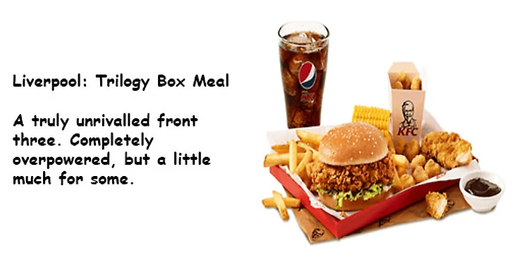 Британский аккаунт KFC сравнил команды АПЛ с блюдами из своего меню. «Челси» – салат с капустой, «Сити» недоступен в Европе