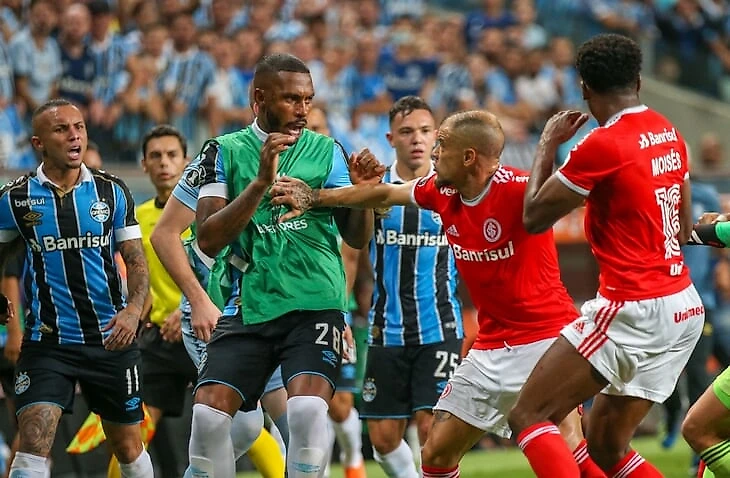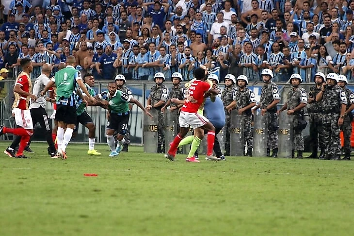 Драка в Кубке Либертадорес: судья удалил по 4 игрока «Гремио» и «Интера». Доигрывали ввосьмером!