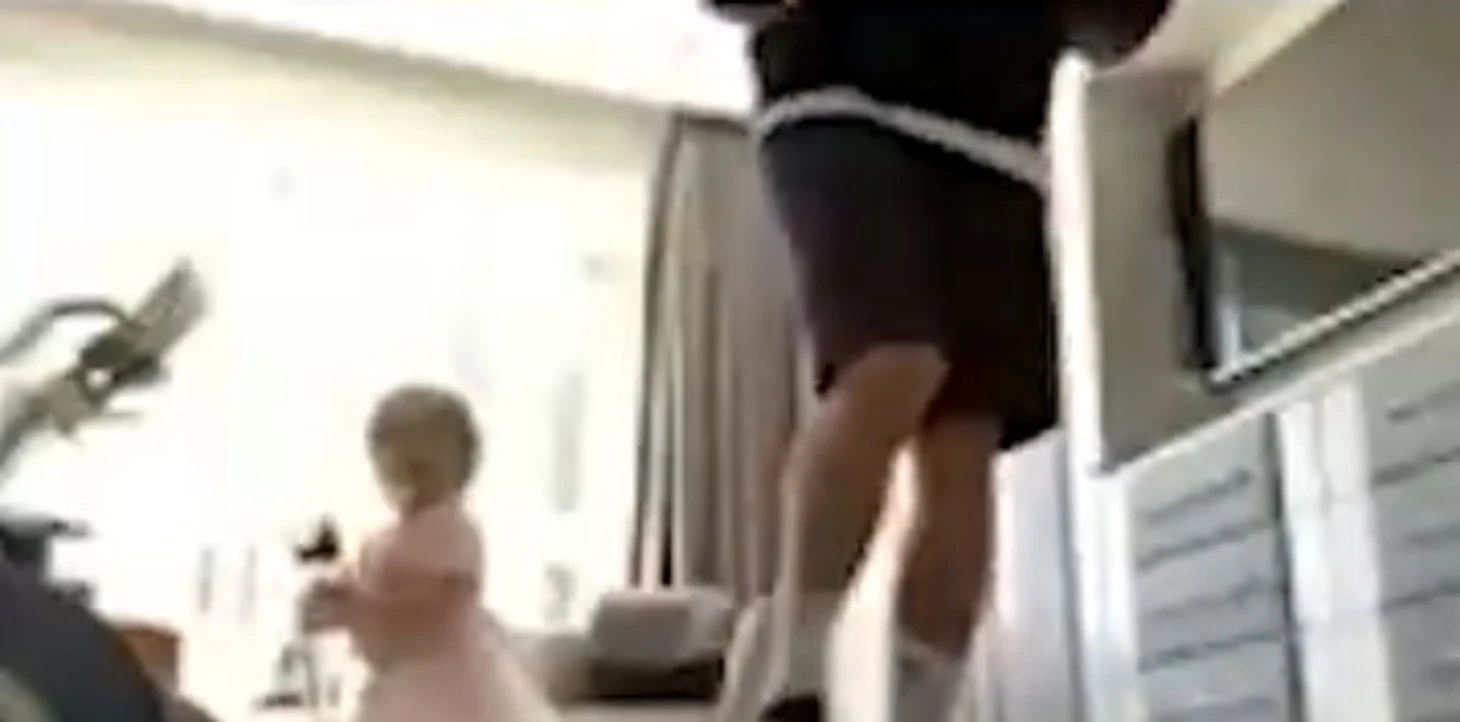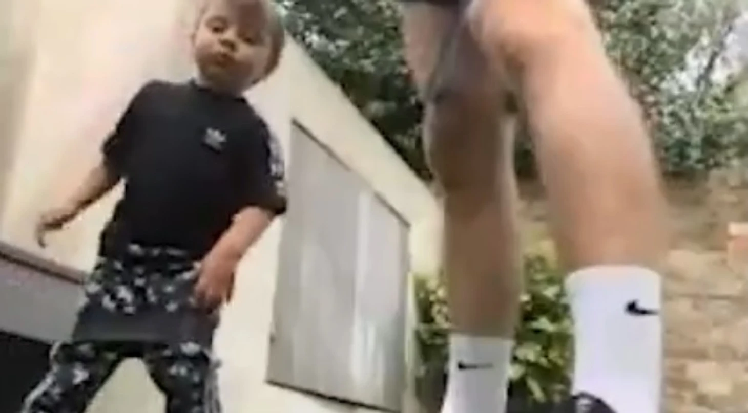 Сын Вертонгена сначала отвлекал папу, а потом тоже стал заниматься: приставные шаги с резинкой на ногах полезны в любом возрасте.