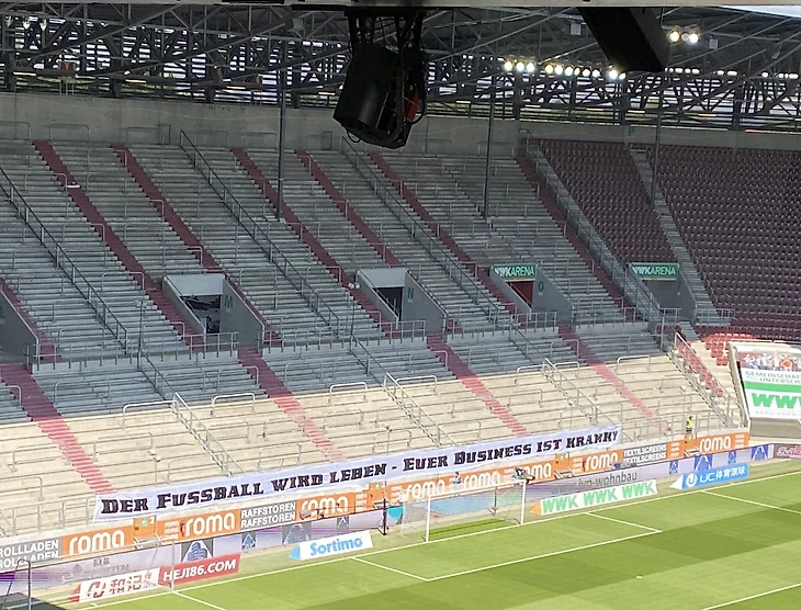 На трибунах в Аугсбурге тоже растянули баннер: «Футбол будет жить – это ваш бизнес болен!».