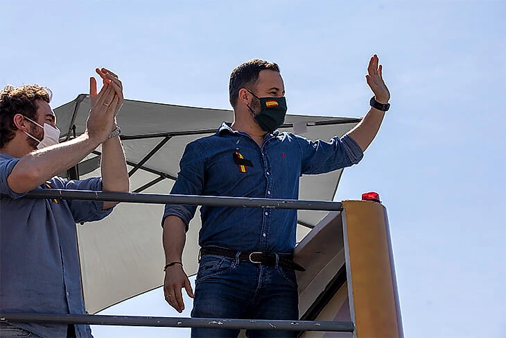 Правда, Рейна не учел одну деталь: демонстрацию организовала ультраправая консервативная партия Vox («Голос»). Возглавлял главную колонну в Мадриде – лидер партии Сантьяго Абаскаль, который сам в марте переболел коронавирусом. Мужчину называют испанским Трампом, он ехал на красно-желтом автобусе, где на борту красовался хэштег #GobiernoDimision (правительство в отставку), и заводил толпу с флагом в руках.