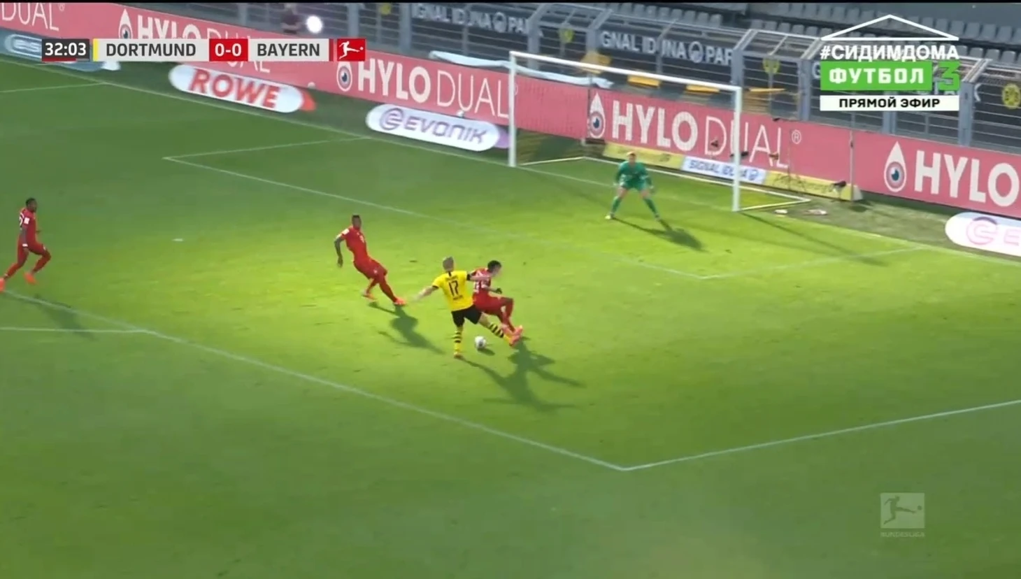 Одно из главных противостояний в центральном матче тура Бундеслиги развернулось на правом фланге «Боруссии» (или на левом – для «Баварии»). Там друг против друга играли набравший потрясающую форму Ашраф Хакими и молодой, но уже закрепившийся в основе мюнехенцев Альфонсо Дэвис.