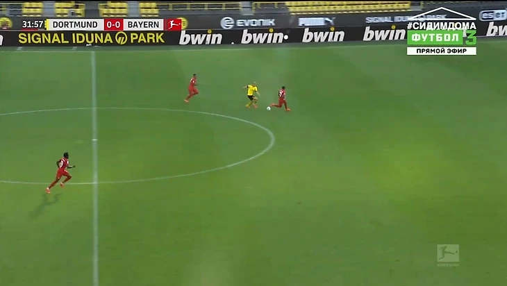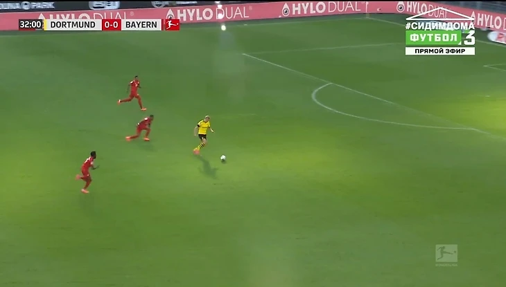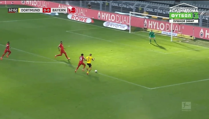 На 32-й минуте «Дортмунд» организовал самую опасную контратаку в матче – закинули на Холанда, который прошел Алабу и помчался к воротам. Кто всех спас? Дэвис, который в начале эпизода был далеко позади нападающего. Вот он, еще на чужой половине поля.