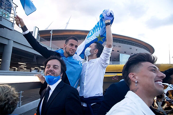 Дезинфекция кубка, красные файеры и «Голубая луна» от Дзюбы: ночной чемпионский парад «Зенита»