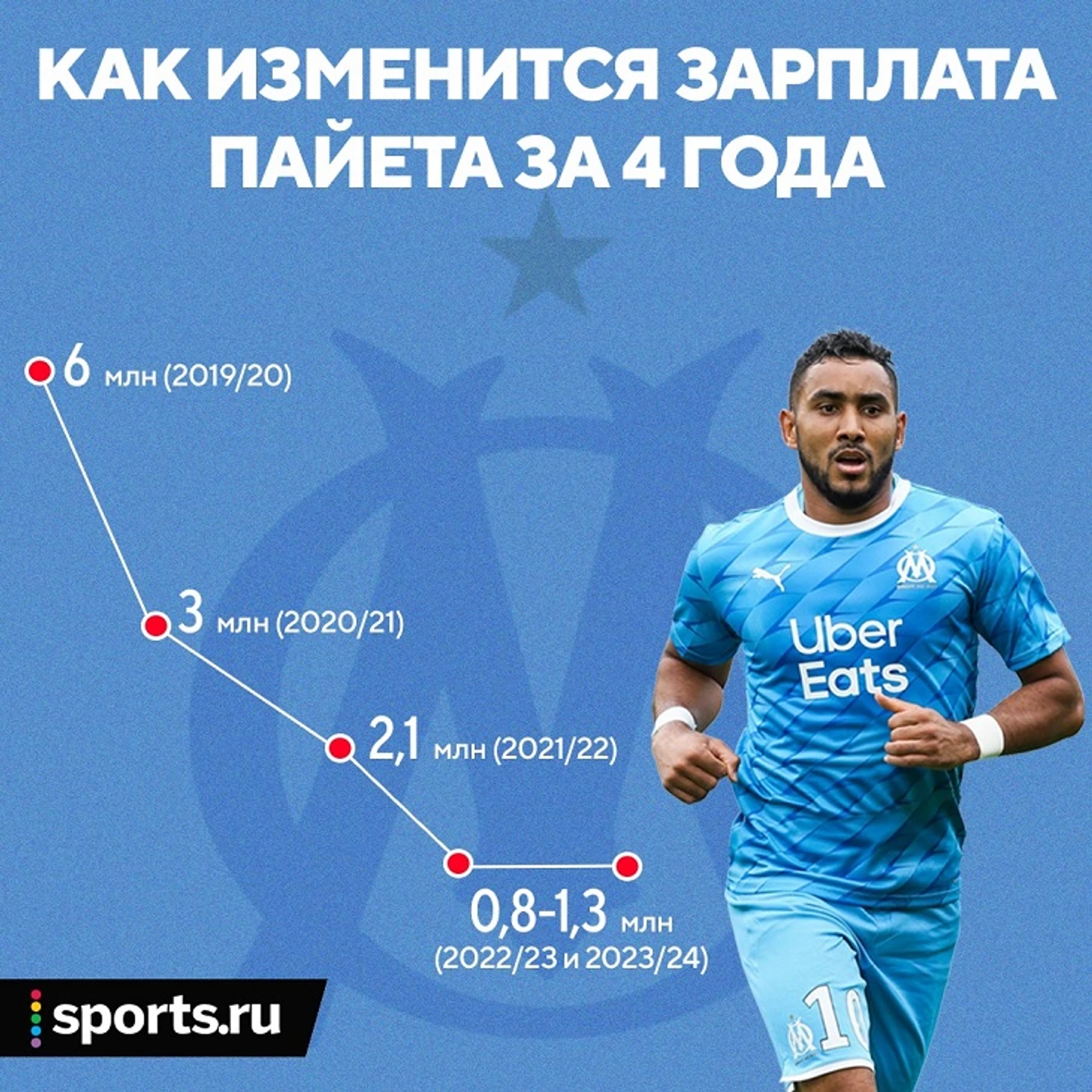 Пайет не первый раз соглашается на сокращение зарплаты ради «Марселя»: в январе 2017-го француз вернулся в клуб из «Вест Хэма», отказавшись от 1,2 млн евро – в Англии он зарабатывал 7,2 млн в год. Эйро назвал это красивым жестом.