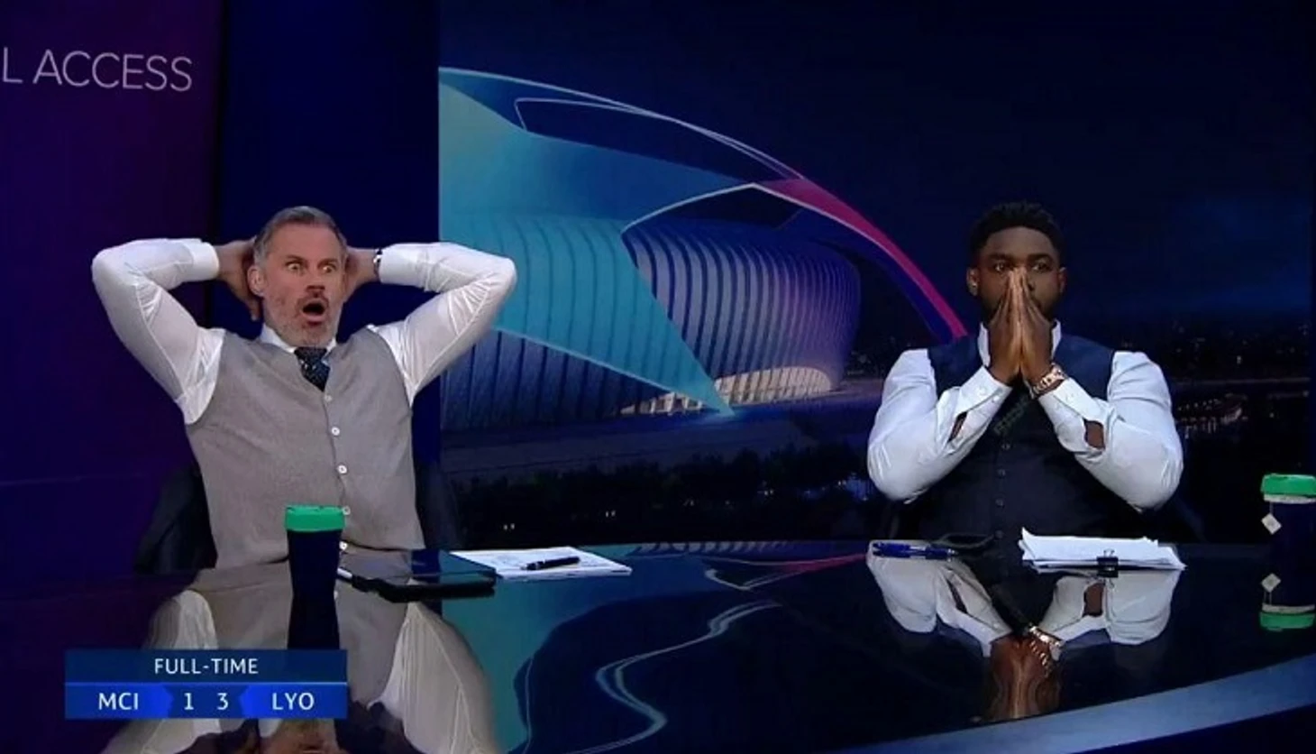 Джейми Каррагер и Майка Ричардс, работавшие экспертами на этом матче, не верят своим глазам.