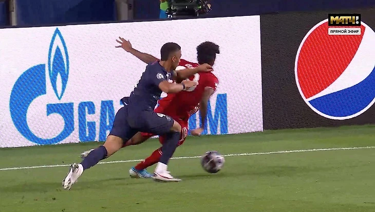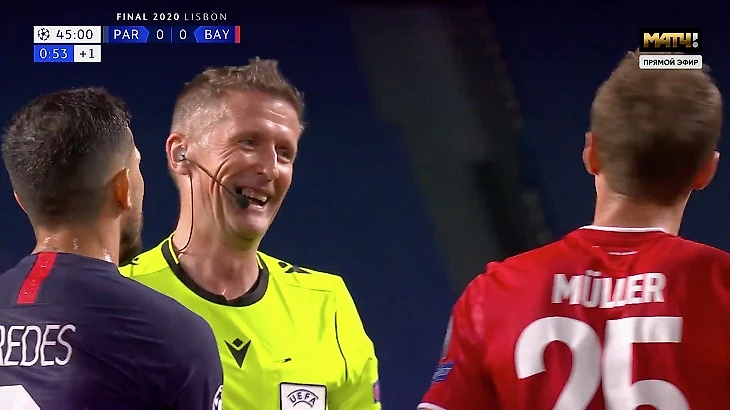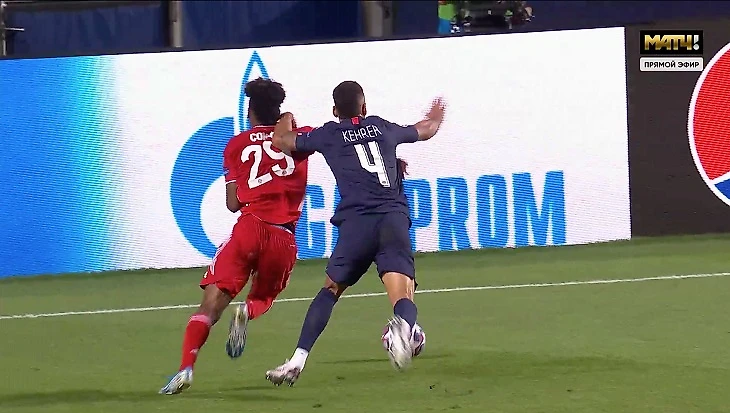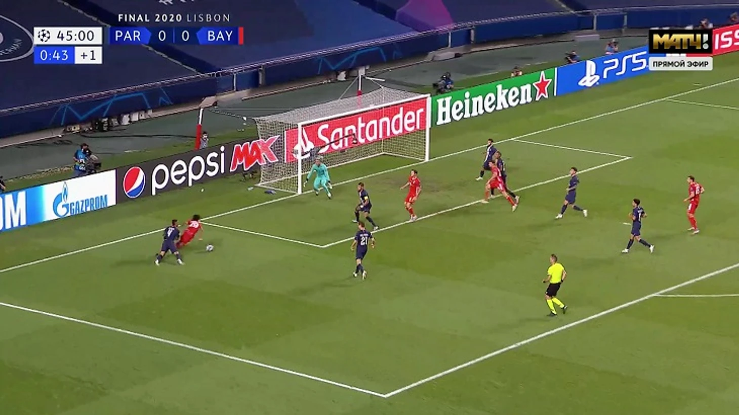 «Бавария» и «ПСЖ» провели первый тайм очень бодро, но без голов. Правда, все могло измениться в компенсированное время. Кингсли Коман принял мяч на левом краю штрафной, качнул Керера и рванул к лицевой. Защитник «ПСЖ» опоздал, поэтому схватил соперника за шею, сбив скорость.