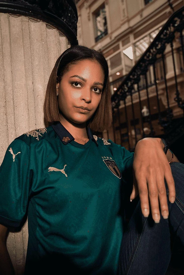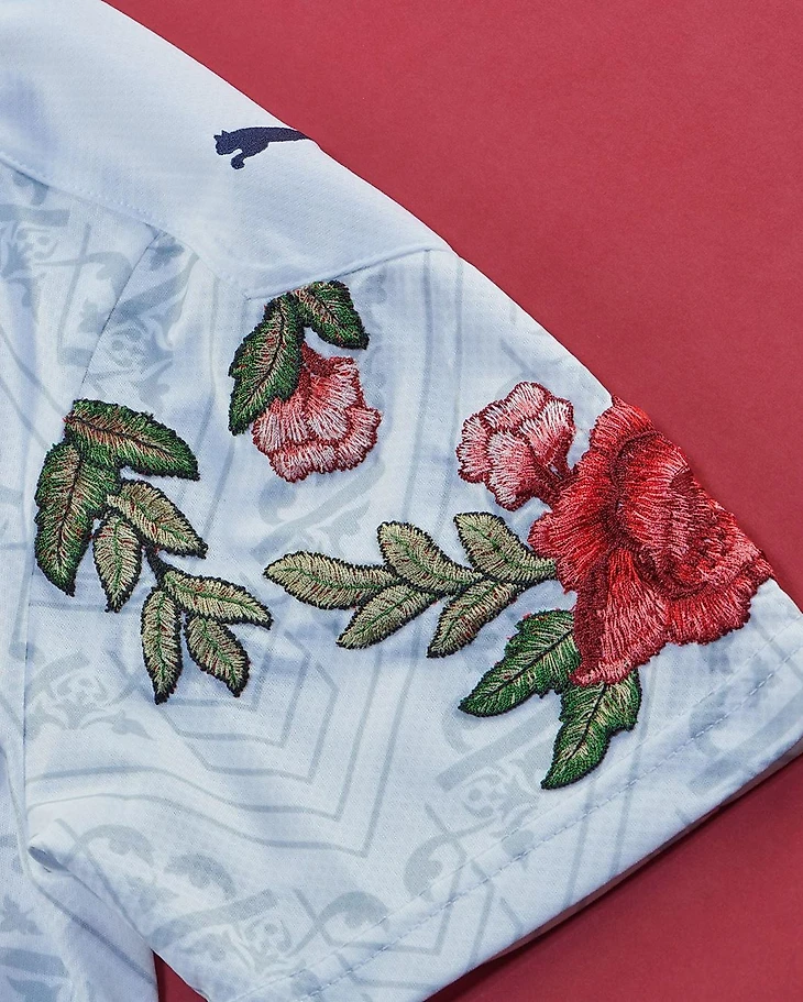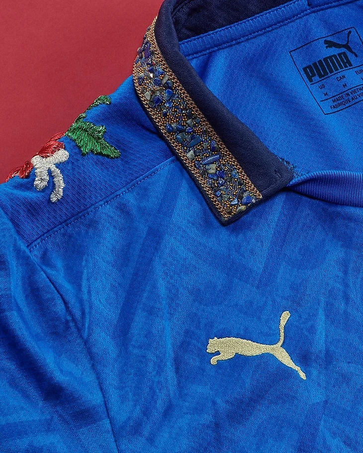 Специально для Puma Дина создала эксклюзивную вышивку для каждого комплекта Италии. Цветочные элементы симметрично дополняют узоры из эпохи Возрождения.